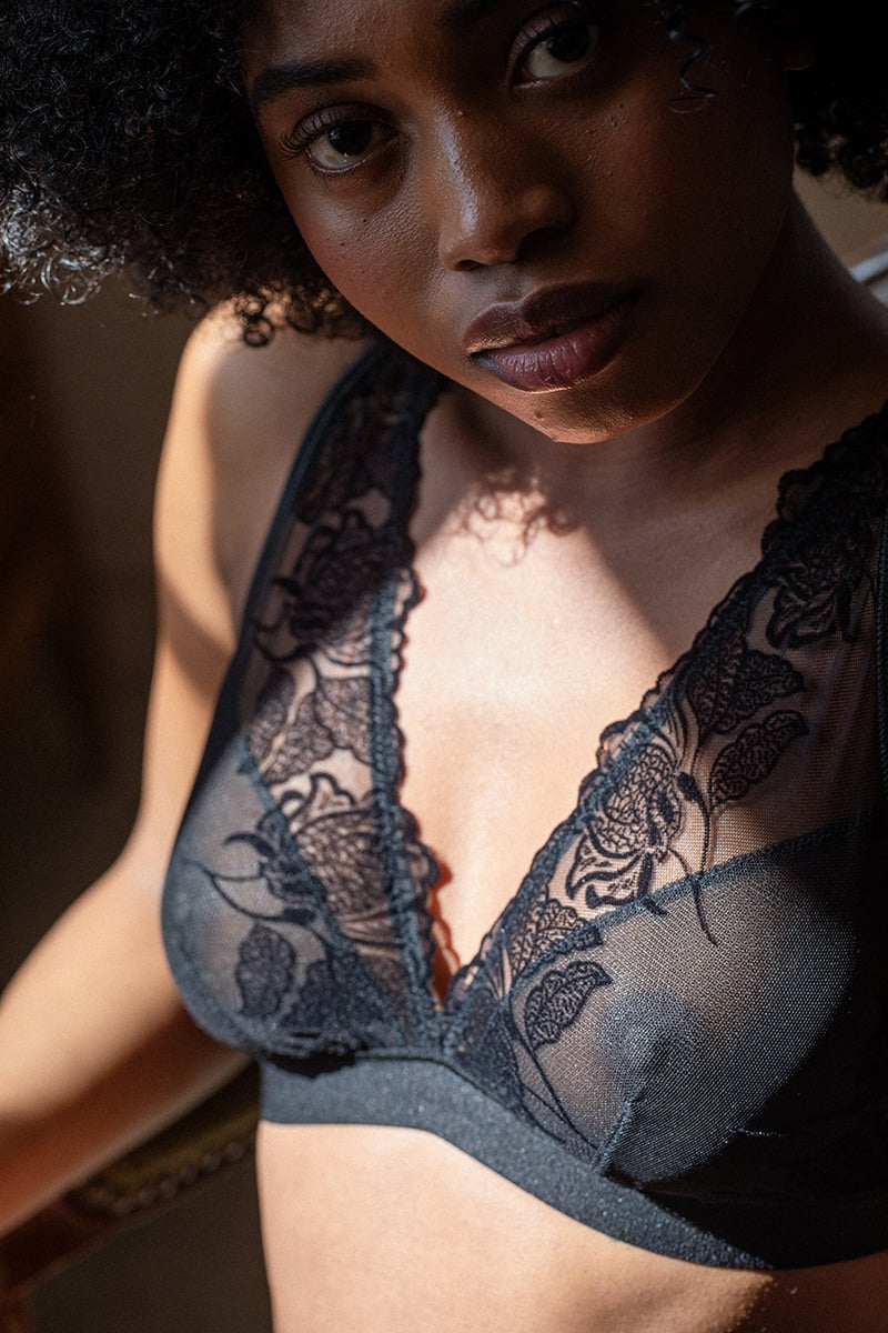 Coupe foulard, dentelle florale et jeu de transparence : on fond pour Neva et sa sexytude doucement rétro !